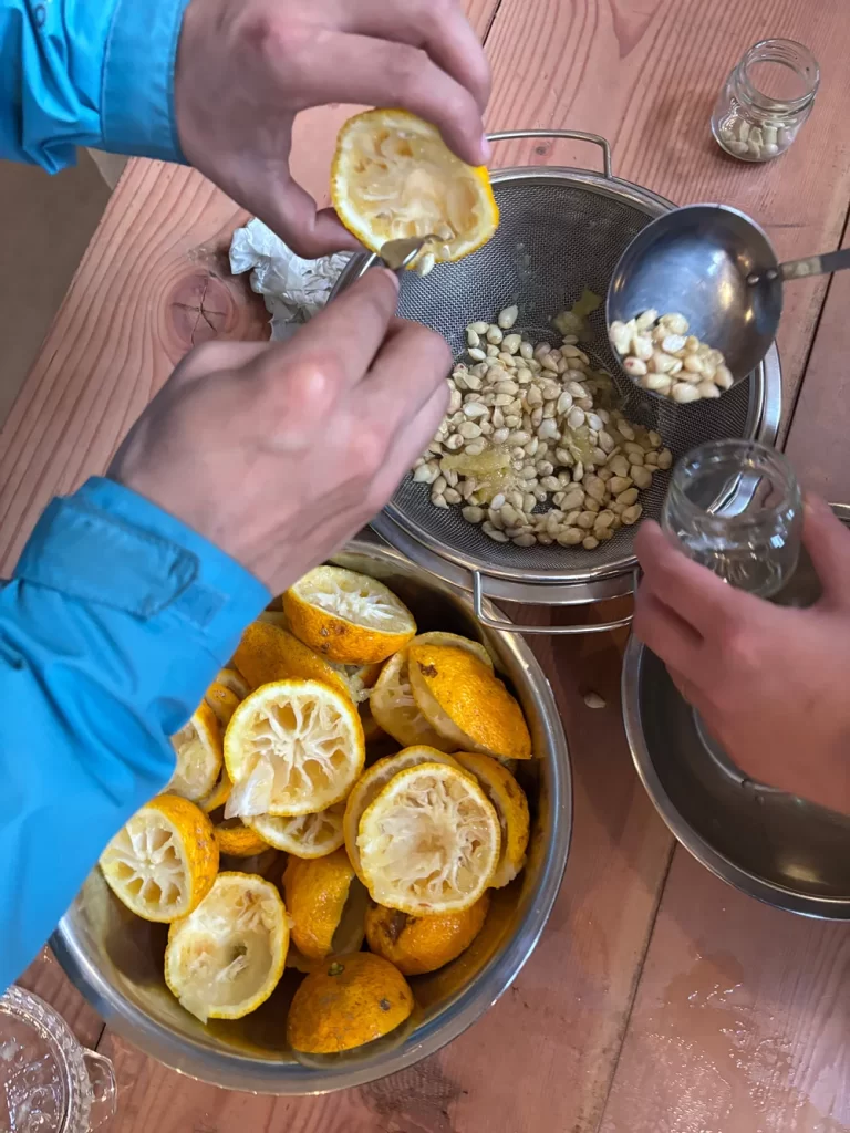 収穫後のゆず仕事では、ゆずポンと化粧水を作っていただけます。それ以外に作りたいものがある場合は材料をご持参ください。